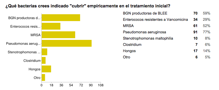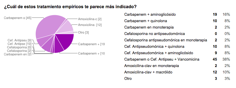 En cuanto al tratamiento empírico (siempre según nuestros protocolos) lo indicado habría sido probablemente una antibioterapia empírica con dos fármacos de inicio.