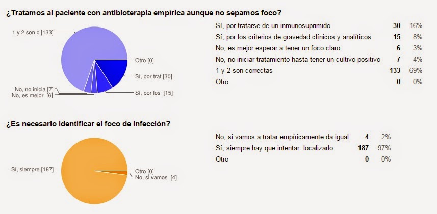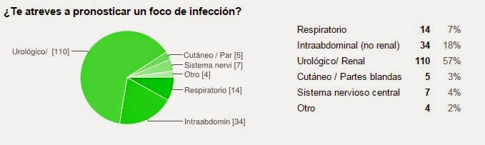 En cuanto a identificar el foco, se trataba de una pregunta sencilla que nos sirve para poder remarcar lo importante que resulta en cualquier paciente séptico intentar identificar el foco de infección. Esto se debe a que el manejo, el control, las muestras a solicitar o incluso la necesidad de un tratamiento quirúrgico o drenaje de posibles colecciones o abscesos dependen de dicha identificación.