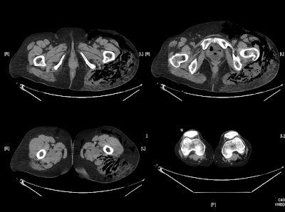 hasta mitad post del muslo izquierdo, con enfisema subcutáneo, crepitación y